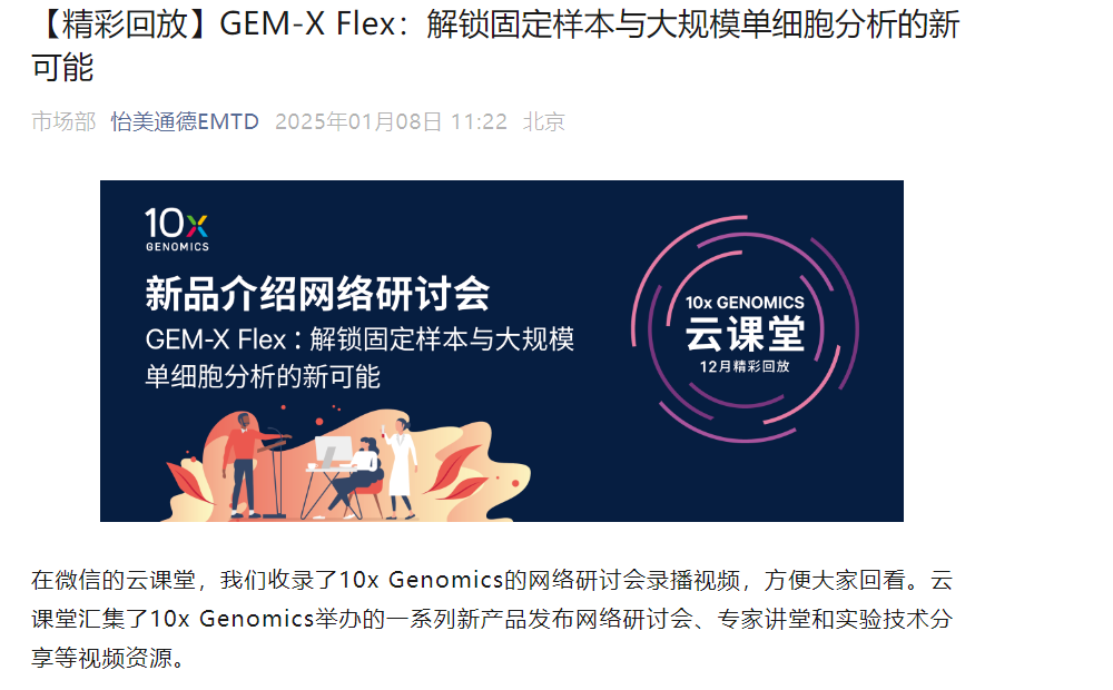 12月24日|不容錯過!GEM-X Flex新品發布,解鎖固定樣本與大規模單細胞...